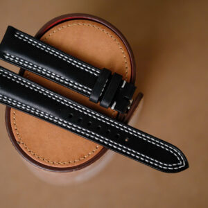 Handmade black leather double stitching strap for JLC Jaeger Lecoultre