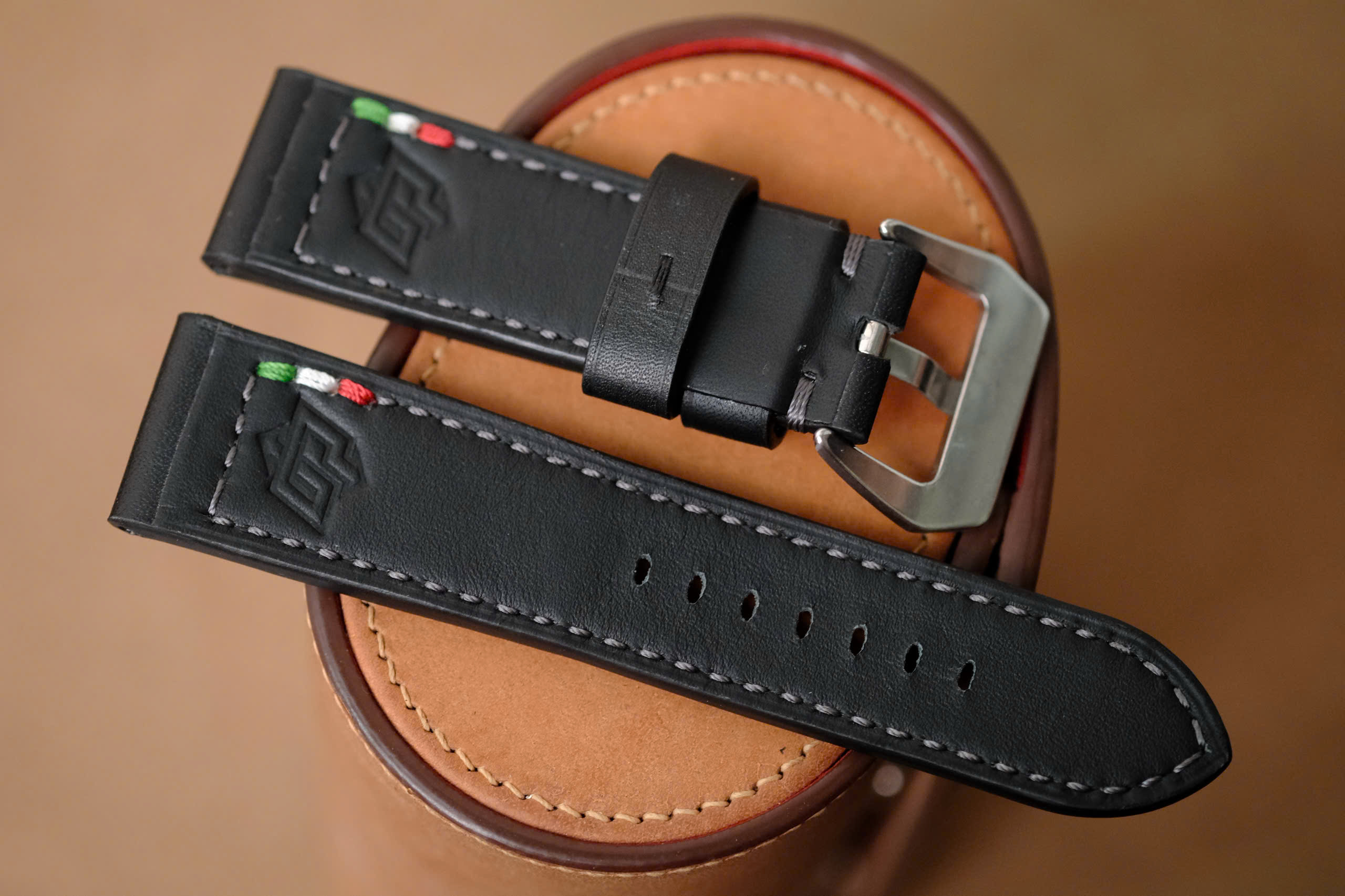 It is decorated with Italian flag stitching, a subtle tribute to Italy — the homeland and heritage of the Panerai brand. Designed specifically to fit Panerai watches, it offers durability, comfort, and refined style.