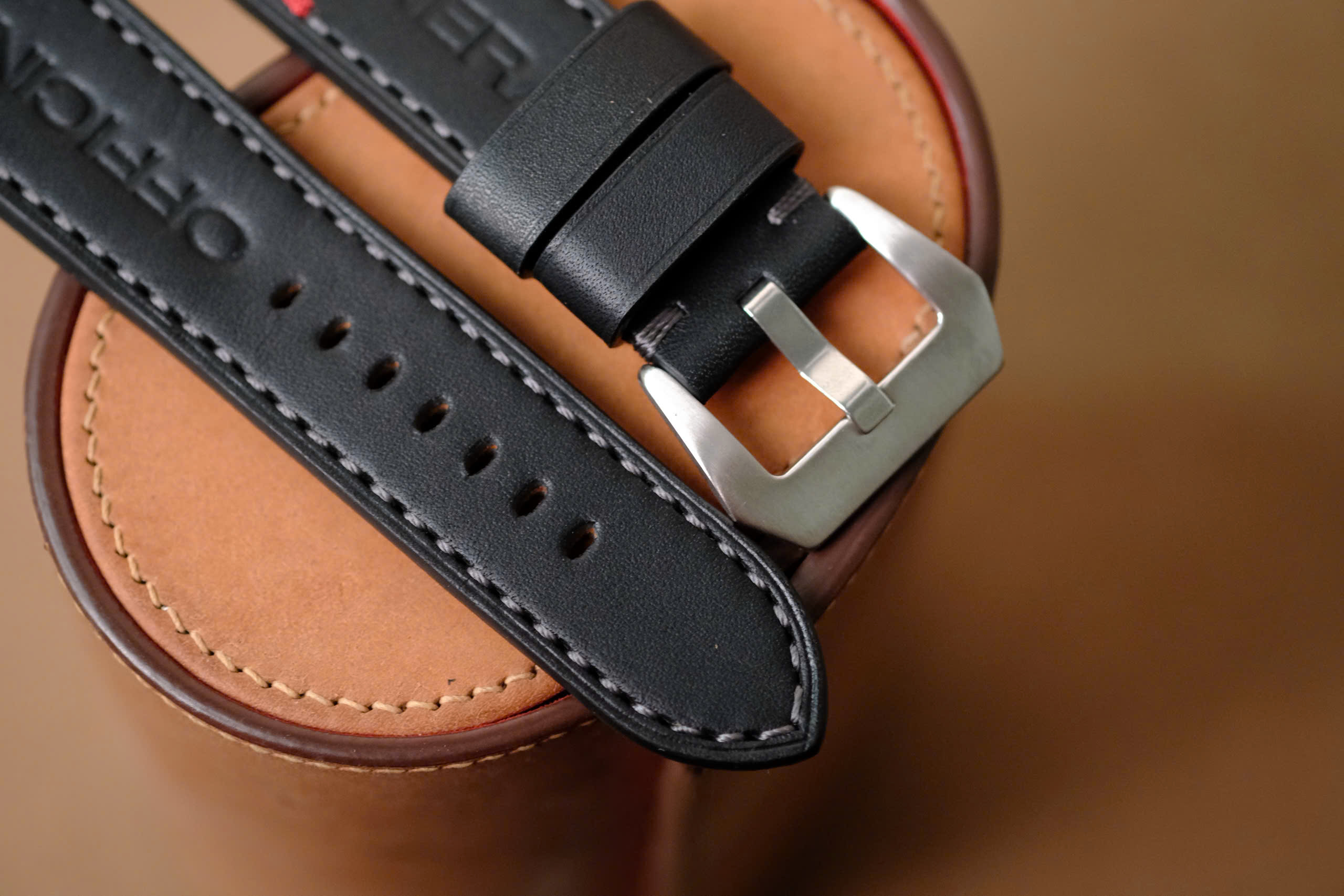 Handmade Black Leather Strap for Panerai PAM – Gray Stitching – 24/22 Custom Sizes
