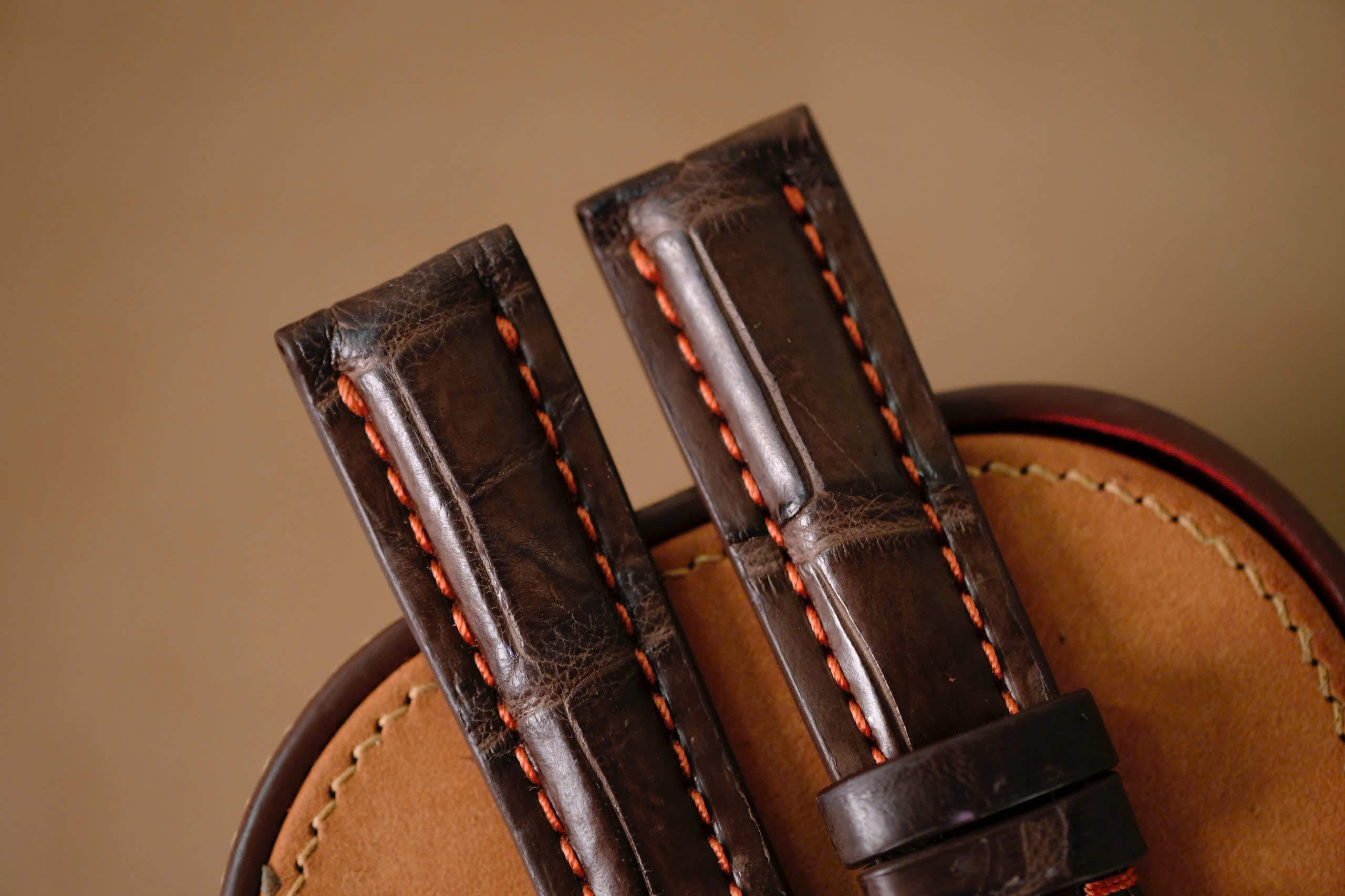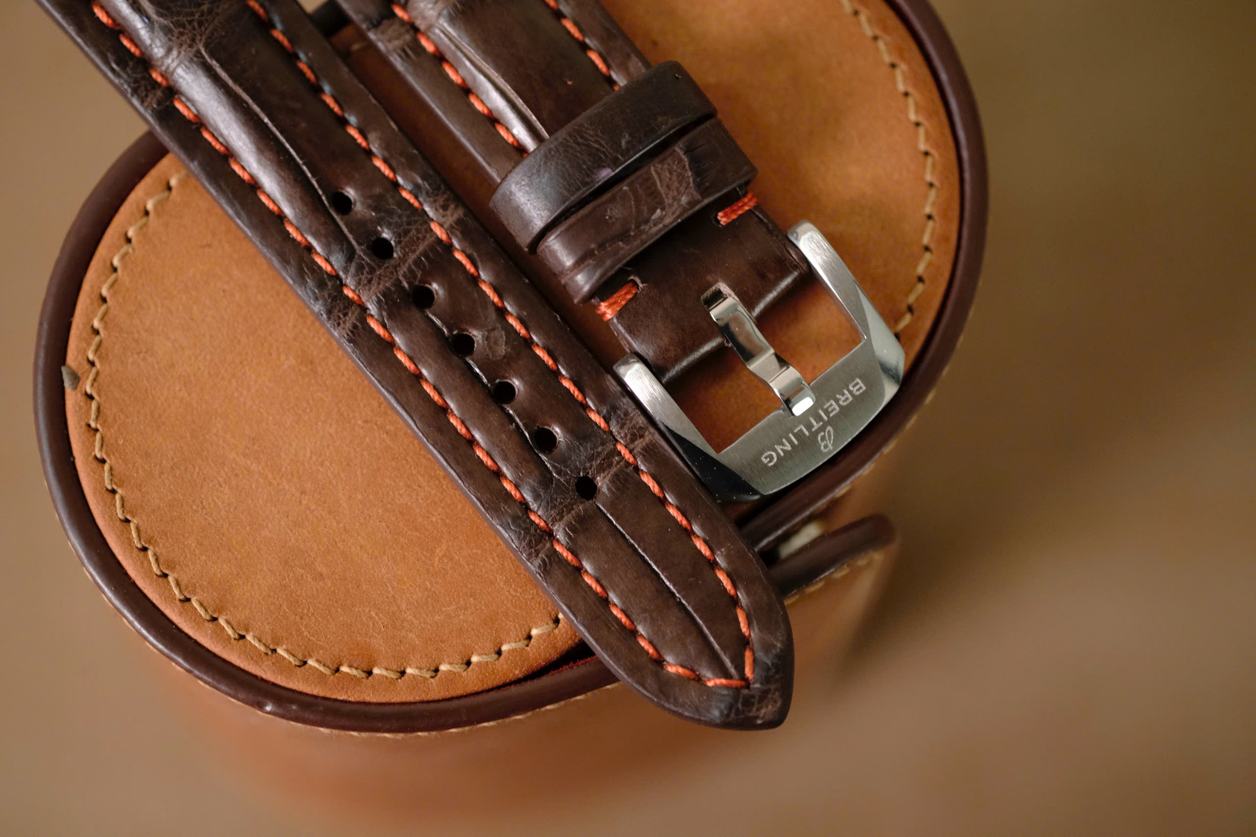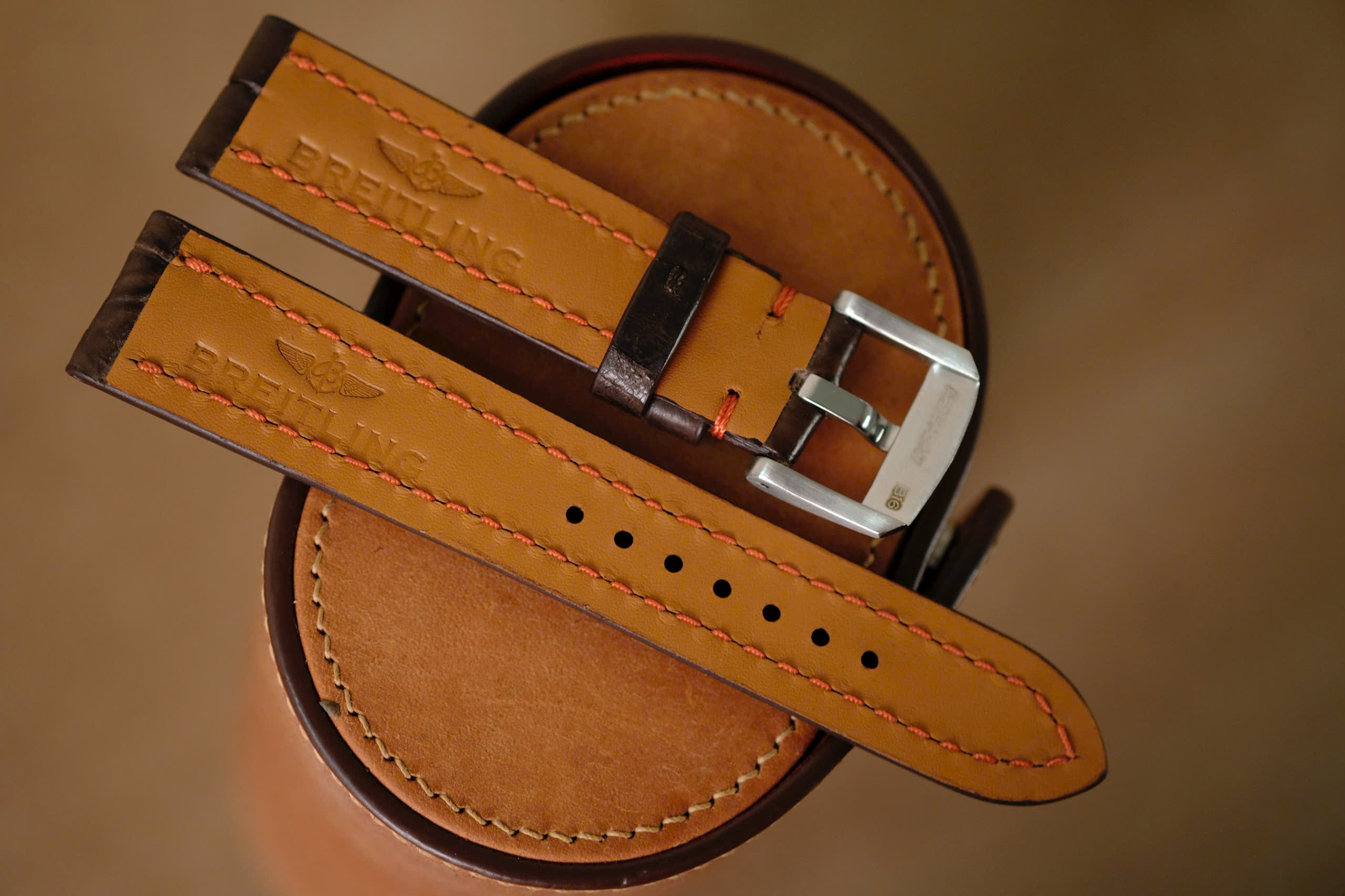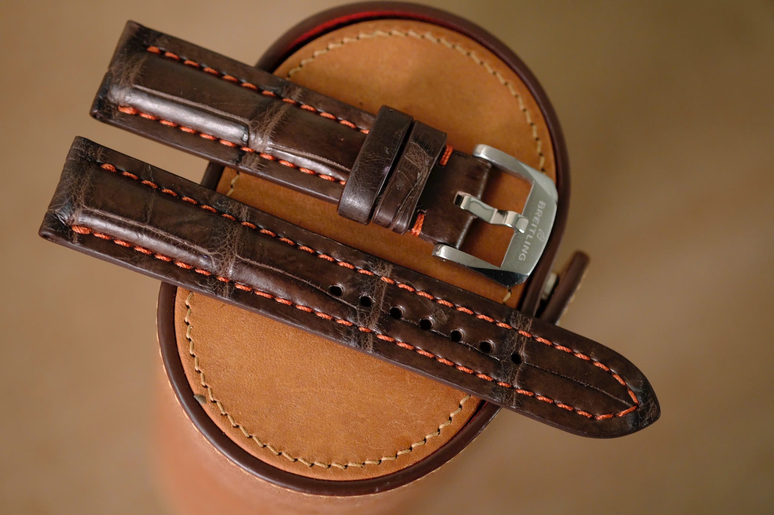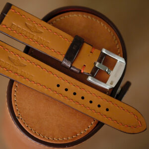 Handmade dark brown strap for Breitling size 22/20, the buckle as image included. The default size is 22/20 (22 mm at the lug, 20 mm at the bucke side). I can change to any size: 24-22, 23-20, 22-20, 22-18, 21-20, 21-18, 20-18, 20-16 …… The default length is 120/75. I can change the length shorter or longer to fit you wrist. I can change size, length, thickness, stitching color if you want.