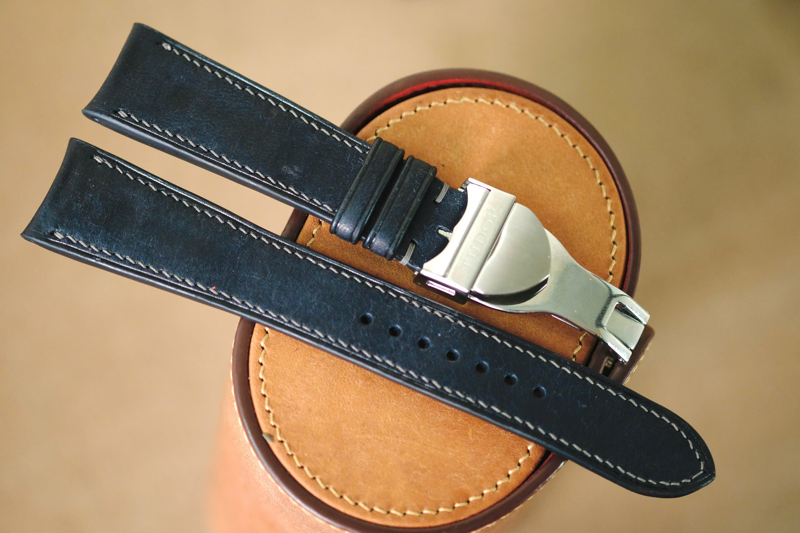 Handmade dark gray Pueblo strap for Tudor size 22/18 (or any size), the deployant clasp as image included. The default size is 22/18 (22 mm at the lug, 18 mm at the bucke side). I can change to any size: 22-20, 22-18, 21-18, 20-18, 19-18, …… The default length is 125/65. I can change the length shorter or longer to fit you wrist. I can change size, length, thickness, stitching color if you want.