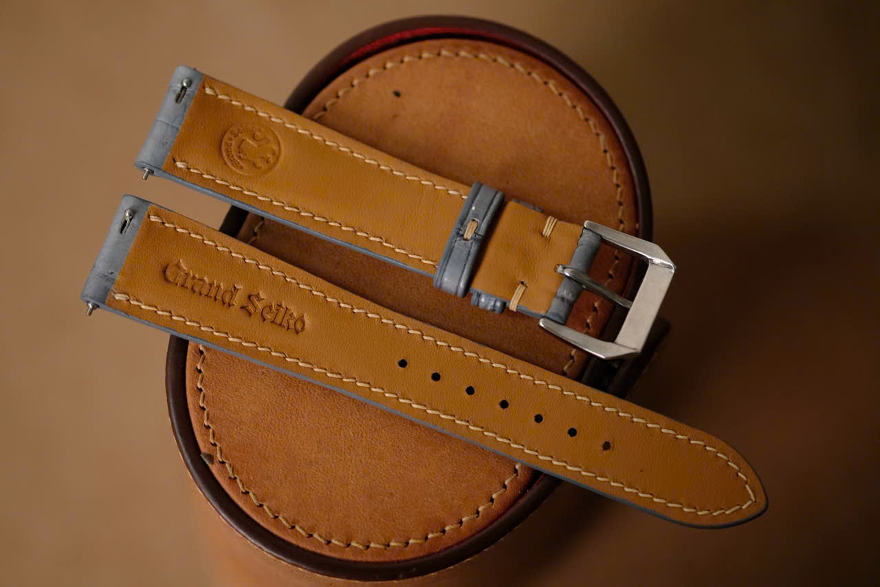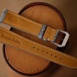This strap is entirely handcrafted from genuine premium Gray leather with beige stitching, creating a warm and timeless look. Designed to fit Grand Seiko watches perfectly, it enhances the watch’s refined and versatile character — ideal for both everyday wear and formal occasions.