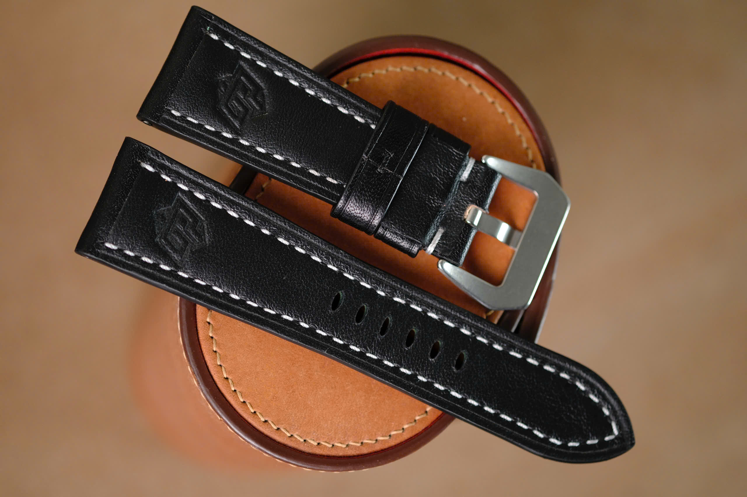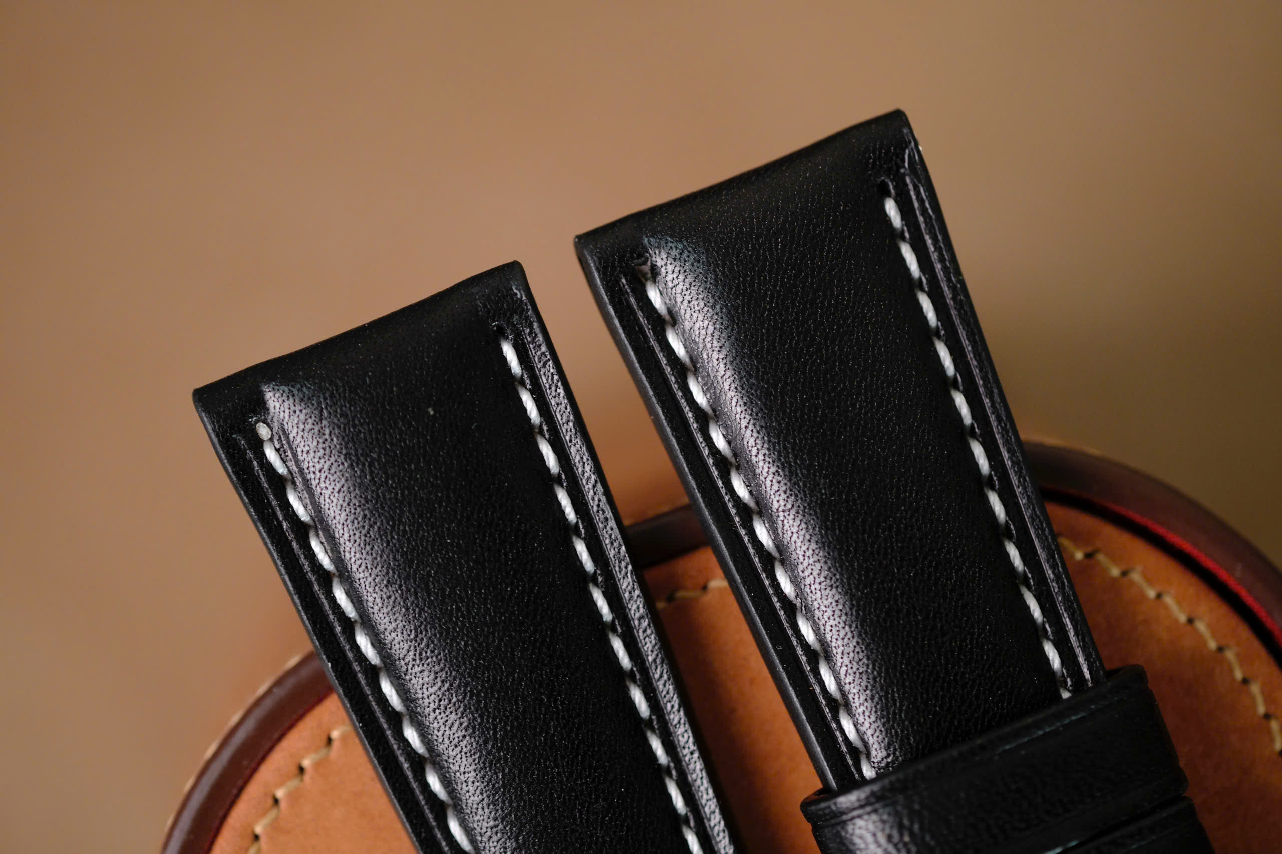Handmade Panerai strap black color white stitching size 24-22 or any size