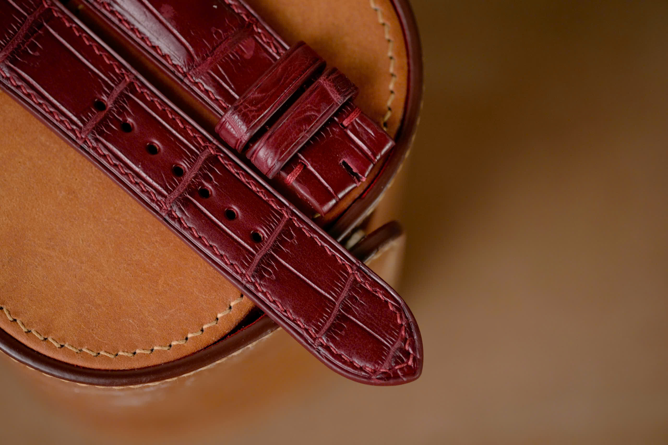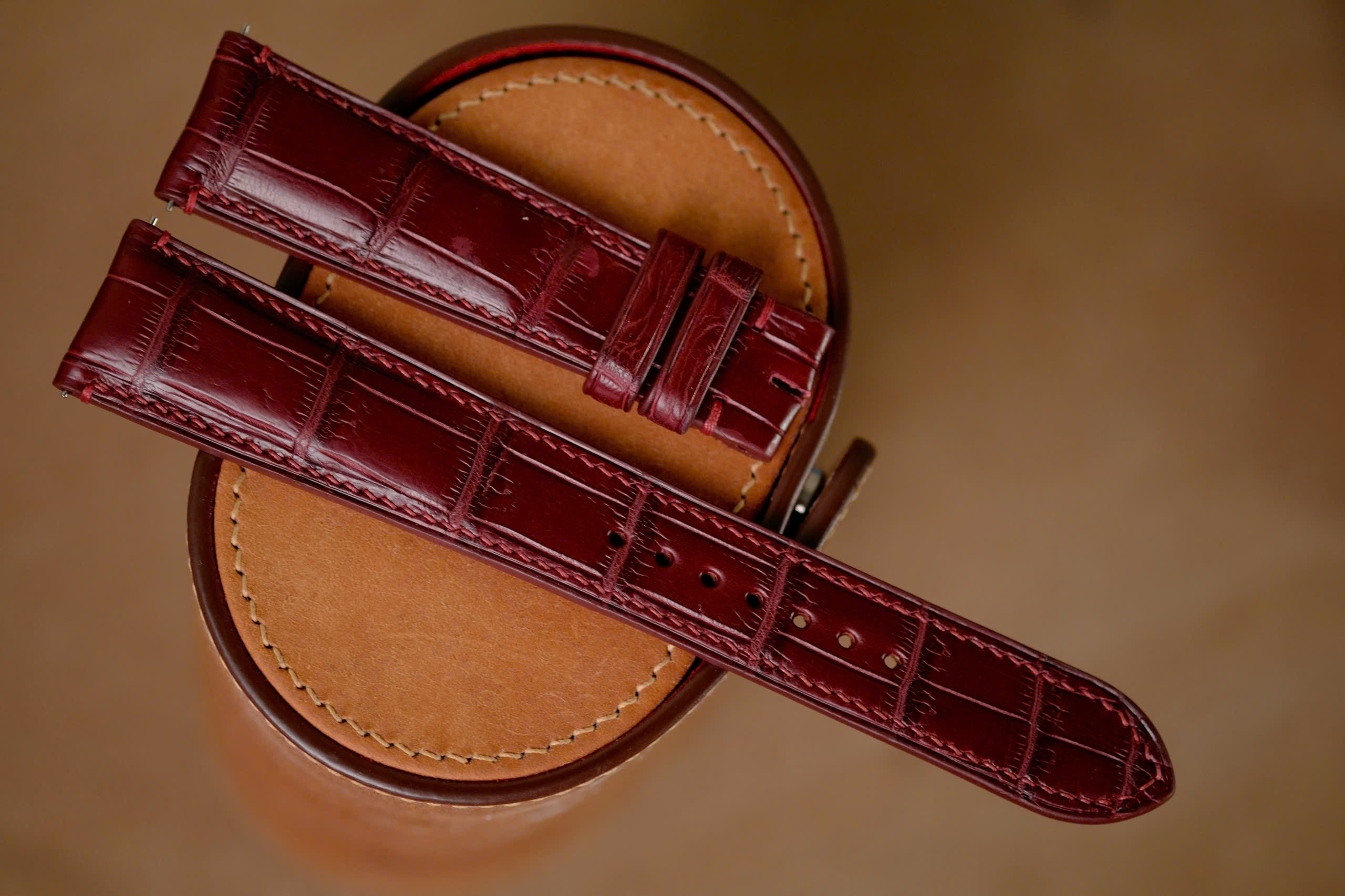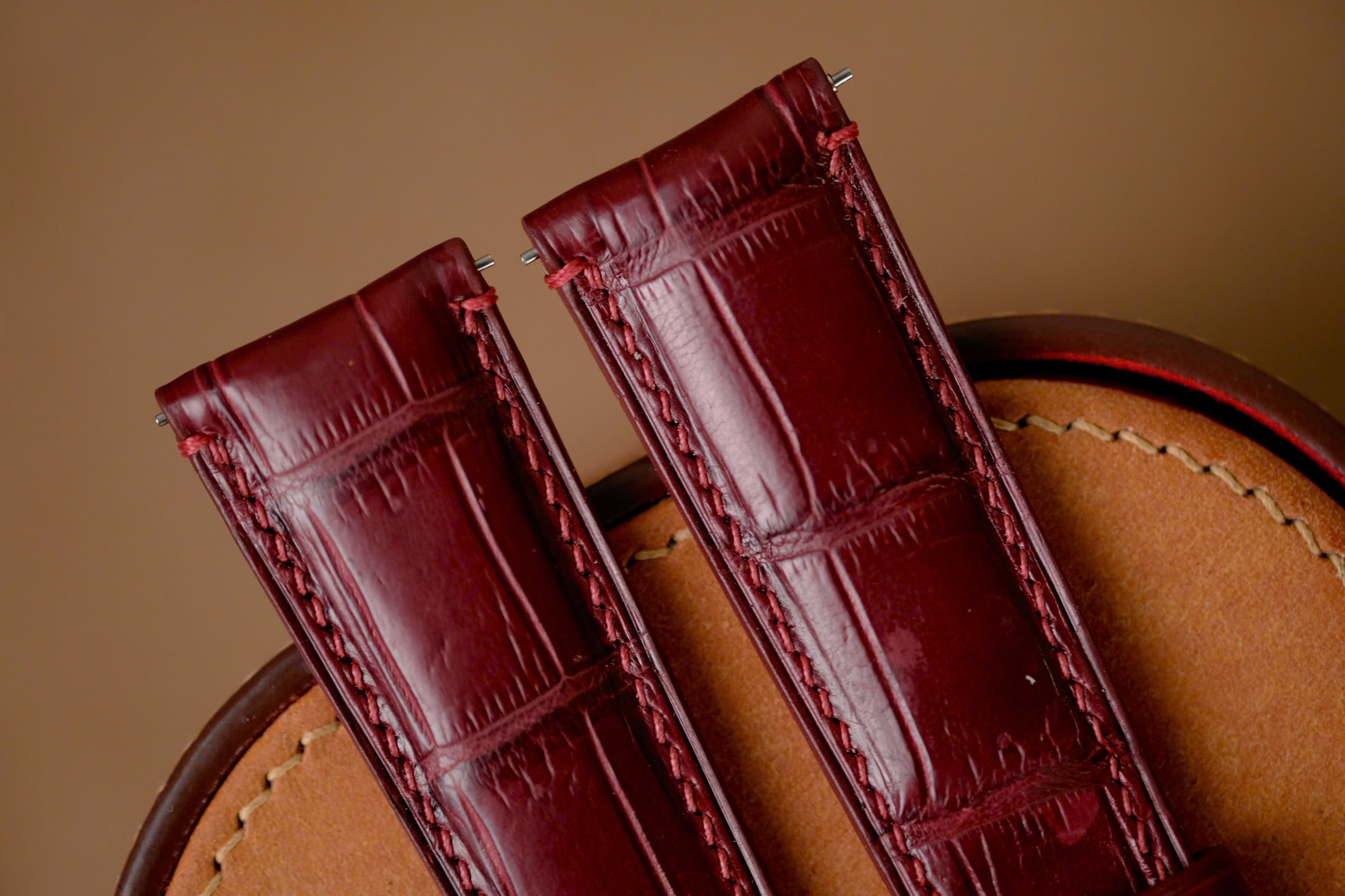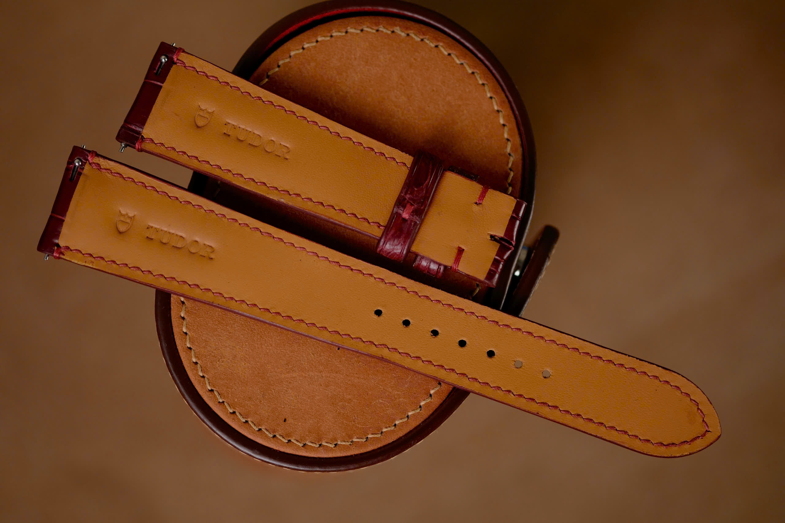 Handmade red bordeaux strap for Tudor size 22/18 (or any size). The default size is 22/18 (22 mm at the lug, 18 mm at the bucke side). I can change to any size: 22-20, 22-18, 21-18, 20-18, 19-18, …… The default length is 125/65. I can change the length shorter or longer to fit you wrist. I can change size, length, thickness, stitching color if you want.
