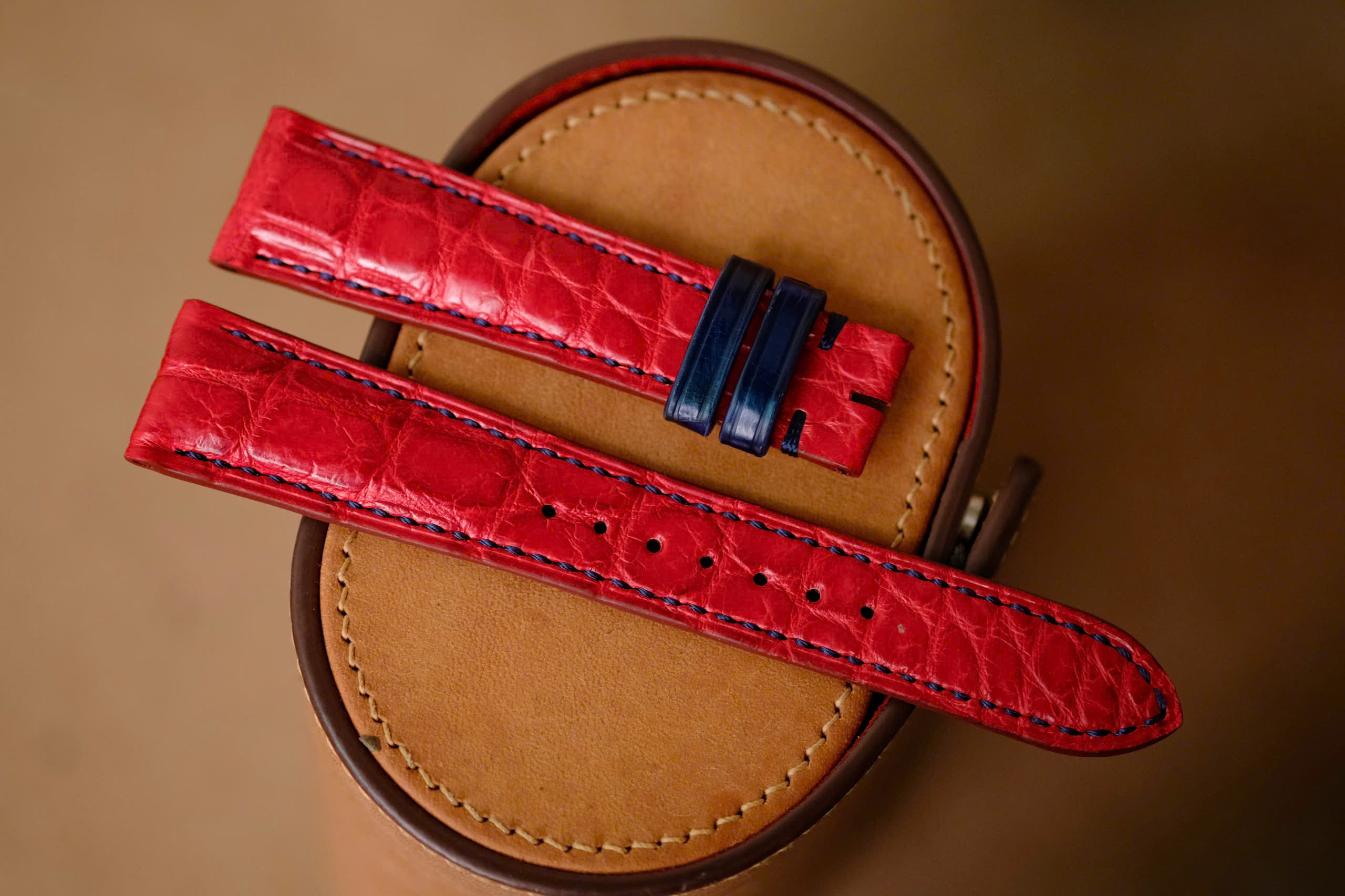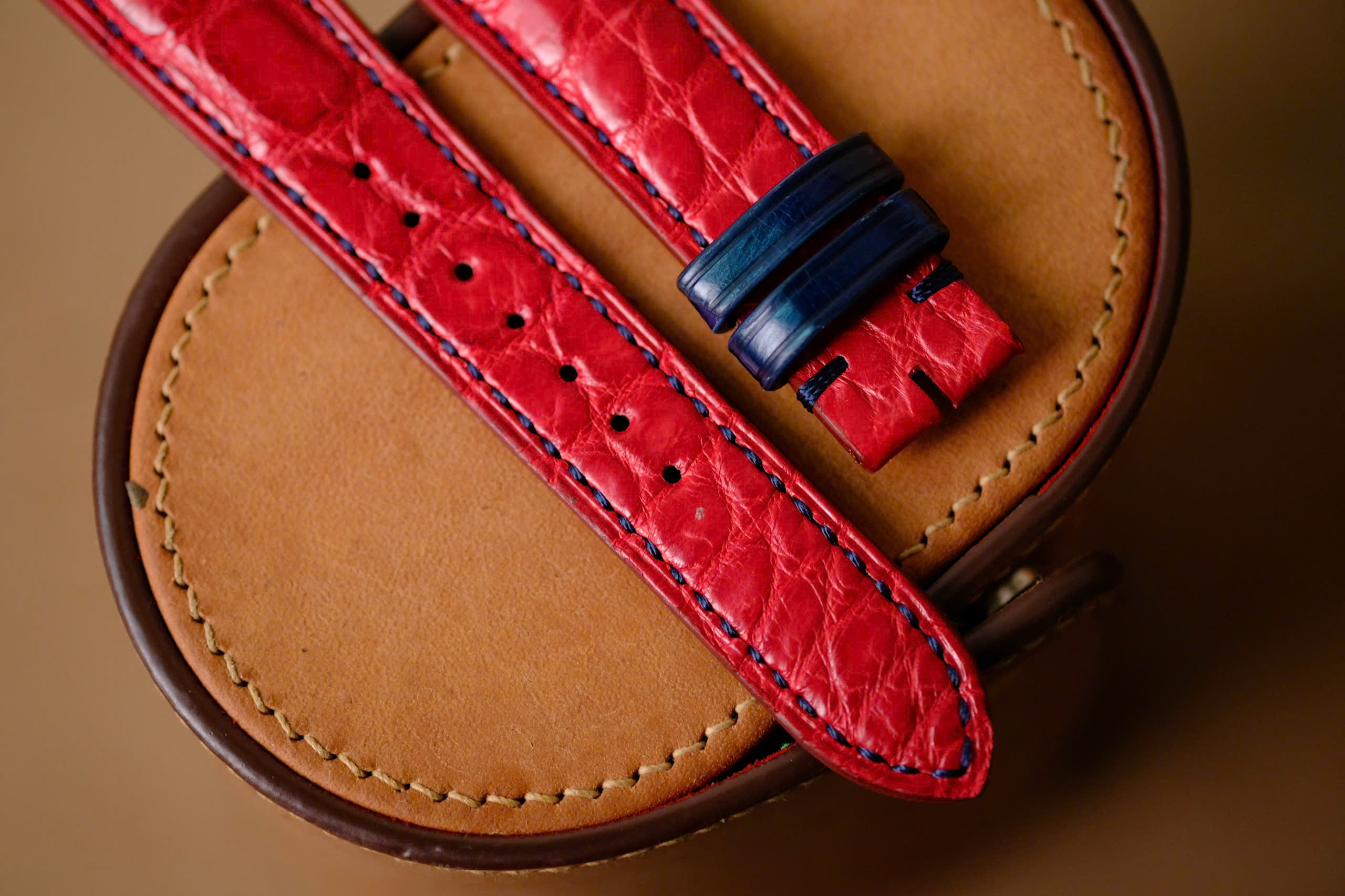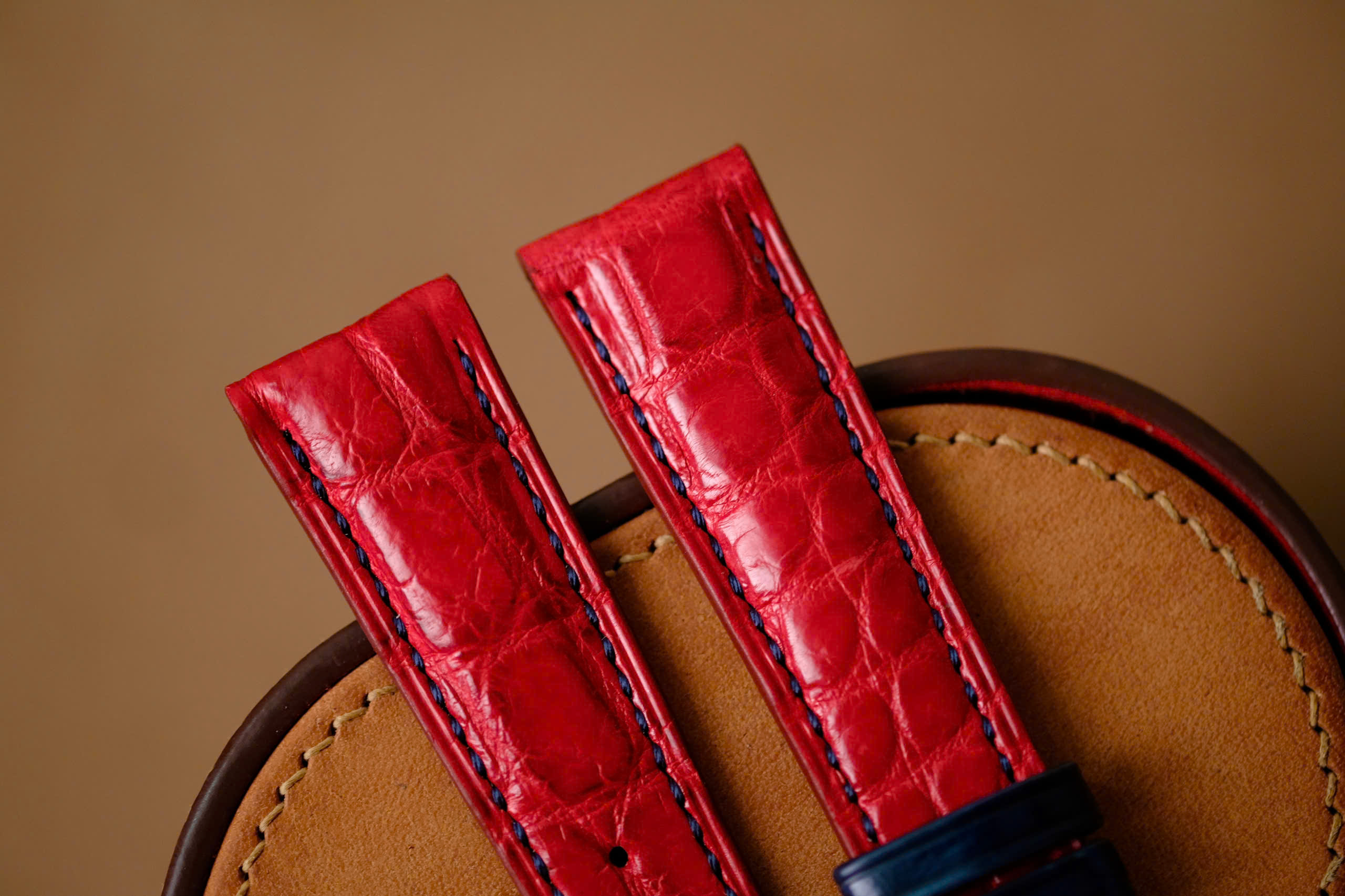This strap is entirely handcrafted from genuine premium Red leather with blue stitching, bue looper, creating a warm and timeless look. Designed to fit Grand Seiko watches perfectly, it enhances the watch’s refined and versatile character — ideal for both everyday wear and formal occasions.
