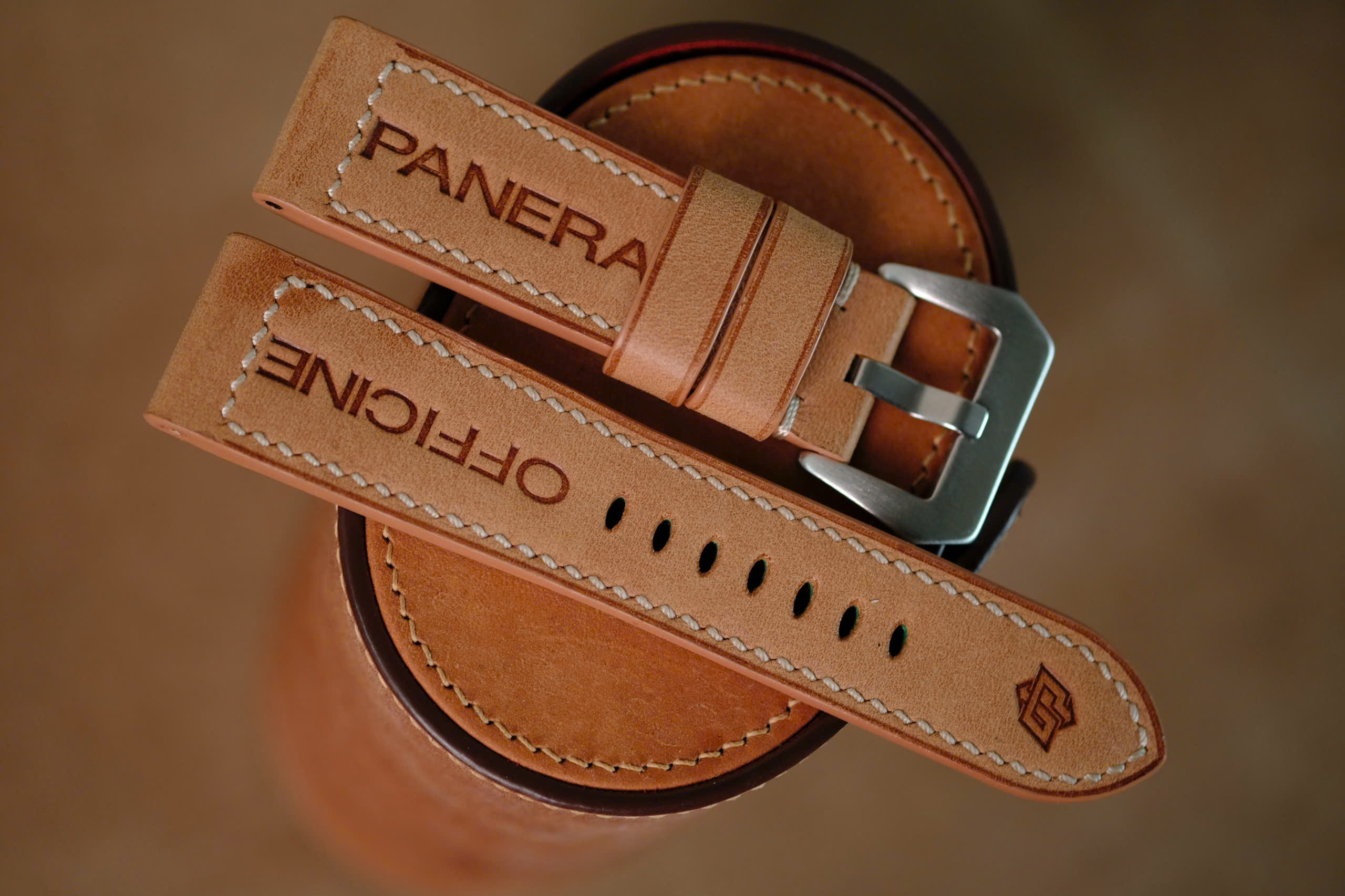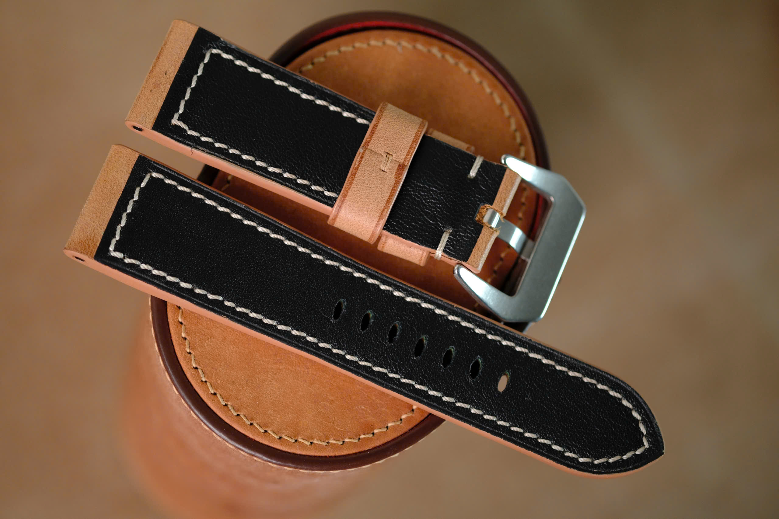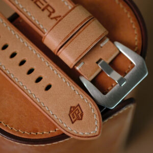 Handmade beige strap for Panerai size 24/22. The default size is 24/22 (24 mm at the lug, 22mm at the bucke side), the silver PIN buckle as image included. I can change to any size: 27-24, 27-22, 26-26, 26-24, 26-22, 24-24, 24-22, 22-22, 22-20, …… The default length is 120/75. I can change the length shorter or longer to fit you wrist. I can change size, length, thickness, stitching color if you want.